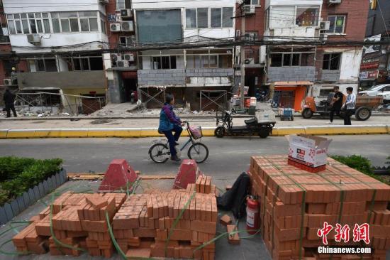 资料图:北京朝阳城管三里屯执法队对同里地区42号楼进行开墙打洞整治。这条街周边部分居民和商户存在擅自改变住房结构、无照经营等违法现象。中新网记者 金硕 摄